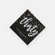 Moderne Servietten aus dem 30. Party mit einem stilvollen schwarzen Hintergrund, Goldkonfetti, dem Titel 'dreißig' in einem fett-weißen Drehbuch-Schriftart, dem Sprichwort 'Happy Geburtday', ihrem Namen und dem Datum der Feier.
