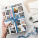 Machen Sie Ihre Geschenke auffällig mit unserem Foto Collage Packpapier, mit 30 Ihrer beliebten quadratischen oder Instagram Fotos in einem Rasterlayout auf einem weißen Hintergrund angeordnet. Jedes Foto hat eine Fläche von knapp 15 cm².