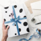 Schwarz-Weiß-Verpackungspapier aus gepunktetem Dalmatiner ...perfekt für den Dalmatiner-Liebhaber in Ihrem Leben! Benutzen Sie es, um Weihnachtsgeschenke mit einer zusätzlichen Touch Rot und Grün, oder für ein Geburtstag oder Jubiläum Geschenk. Schwarz und Weiß passt mit jeder Farbe für jeden Anlass!