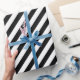30 x 6 matte Schwarz-weiße Diagonalstreifen Geschenkpapier