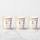 Celebrate a 30th birthday with tropical style — think sunshine, palm trees, and a touch of modern preppy charm. This customizable birthday party paper cup coordinates with a matching invitation and other party supplies. Featuring soft pastel stripes in blush pink, butter yellow, and cream with a minimalist palm tree motif, this design blends casual luxury with sunny tropical charm. The clean typography and modern layout make it perfect for milestone birthdays, destination parties, or elegant resort celebrations. Personalize the template with your info. Cups can serve both hot and cold beverages and are available in several sizes, either with or with our lids.