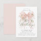 A large blush pink coquette bow is decorated with elegant pink roses on this birthday invitation. Classic script calligraphy lets your guests know it's a milestone birthday. Easy to personalize with your party details.