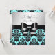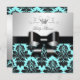 311-BlackBerry Blue Damask Black Bow| Babydusche Einladung
