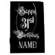 Dieses aufwändige und formale Geschenktütendesign im Geburtstag beinhaltet die Meldung "Happy 31st Birthday", in opulentem Text im Skriptstil, auf schwarzem Hintergrund. Es hat auch einen benutzerdefinierten Empfängernamen. Ein Geburtstagsgeschenke wie dieser könnte eine respektable Art sein, ein Geschenk oder Geschenk zu verpacken, das zum Feiern des 31. Geburtstages von jemandem gegeben wird. [~Z0000557]