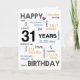 31 zu drehen ist ein bedeutender Anlass im Leben eines jeden, also warum nicht feiern, indem sie einige herzliche 31. Geburtstagswünsche senden. Die Vorderseite der Geburtstagskarte ist mit Freudenbotschaften, Liebe, Feiern und all den spannenden Dingen geschmückt, die den Tag ganz besonders machen.
