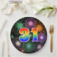 Diese farbenfrohe, fröhliche und lustige Papierplatte zeichnet sich durch eine große Zahl "31" aus, die ein inspiriertes Muster des Regenbogenspektrums enthält. Es zeichnet sich auch durch ein lebendiges und aufregendes Feuerwerk inspiriert. Es hat einen schwarzen Hintergrund. Teller wie diese können bei einer Feier zum 31. Geburtstag von jemandem, zum 31. Geburtstag, zum 31. Jahrestag oder zu einem anderen 30. [~Z0000490]