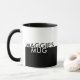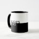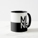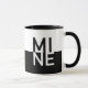 Personalisieren Sie diese zeitgenössische Schwarz-Weiß-Tasse. Dieses saubere, moderne Design hat auf der einen Seite das Wort "MINE", auf der anderen das Zimmer für Ihren Namen.