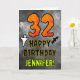 An der Vorderseite dieses spukhaften und beängstigenden Geburtstagskarten-Designs von Hallowe’en steht eine große Zahl "32". Es enthält auch die Meldung "HAPPY BIRTHDAY", und einen personalisierten Namen. Auch ein Geist und eine Fledermaus sind auf der Vorderseite dargestellt. Im Inneren befindet sich eine personalisierte Geburtstagsgrüßbotschaft, oder man könnte sie löschen und leer verlassen werden, wenn eine Nachricht von Hand geschrieben werden soll. Eine personalisierte Geburtstagskarte wie diese könnte eine lustige Art sein, jemandes zweiunddreißigsten Geburtstag zu würdigen, der auch auf den 31. Oktober fällt (Halloween). [~Z0000547]