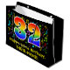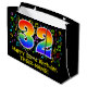 Dieses lustige, lebendige und farbenfrohe Geschenktütendesign mit Geburtstagsthema zeigt eine große Zahl "32" mit einem inspirierten Regenbogenspektrum-Gefälle, zusammen mit der Meldung "Happy 32. Birthday" und einem personalisierten Namen. Ein Teil des Hintergrundes weist verschiedene Musiknoten und Symbole mit verschiedenen Farben und Größen auf. Eine Geschenktasche wie diese könnte eine lustige Art sein, ein Geburtstagsgeschenk oder ein Geschenk für einen Sänger, einen Musikkomponisten, einen Musiker oder jemanden, der seinen 32. Geburtstag feiert, zu verpacken. [~Z0000425]