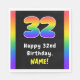 Dieses aufregende und auffällige Geburtstagsthema der Papierserviette zeigt die Zahl "32" mit einem farbenprächtigen Regenbogenspektrum inspirierten Farbverlaufsmuster, zusammen mit der Meldung "Happy 32. Birthday" und einem benutzerdefinierten Empfängernamen. Lebhafte, zum Geburtstag bestimmte Papierservietten wie diese können bei einer Geburtstagsparty zum 30. Geburtstag von jemandem verwendet werden. [~Z0000629]