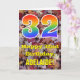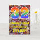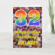 Die Vorderseite dieser bunten, rustikalen und naturlich inspirierten Geburtstagskarte zeigt eine große Zahl "32" mit einem inspirierten Regenbogengefälle, zusammen mit der Meldung "Happy 32. Birthday" und einem bearbeitbaren Namen. Der Hintergrund der Vorderseite der Karte weist ein rustikales, gefallenes Herbstblatt-Muster auf. Im Inneren befindet sich eine individuell angepasste Geburtstagsgrüßbotschaft, oder man könnte sie löschen und leer verlassen werden, wenn eine Nachricht von Hand geschrieben werden soll. Eine solche individuelle Geburtstagskarte könnte eine lustige Art sein, Geburtstagswünsche an jemanden zu senden, der seinen 30. Geburtstag feiert. [~Z0000384]