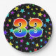 Dieses fröhliche, lustige und farbenfrohe Papier-Plattendesign zeichnet sich durch eine große Zahl "33" aus, die eine inspirierte Farbgebung des Regenbogenspektrums enthält. Der Hintergrund weist ein farbenfrohes Sternmuster auf. Teller wie diese können bei einem Party zum 33. Geburtstag eines Mannes, zum 30. Geburtstag eines Ehepaars oder zum 30. Geburtstag oder zu einem anderen 33. Ereignis genutzt werden. [~Z0000493]