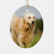 Golden retriever mit dem Tennisball, der in die Felder läuft