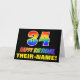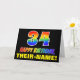 Die Vorderseite dieser fröhlichen, farbenfrohen und lustigen Geburtstagskarte zeigt eine große Zahl "34" und die Meldung "HAPPY BIRTHDAY", beide mit einem inspirierten Regenbogenspektrum-Farbverlauf, zusammen mit einem kühnen gelben, anpassbaren Empfängernamen. Die Vorderseite weist auch einen minimalen, schlichten, schwarzen Hintergrund auf. Die Innenseite verfügt über eine benutzerdefinierte Geburtstagsgrüßbotschaft oder könnte gelöscht und leer verlassen werden, wenn eine Nachricht von Hand geschrieben werden soll. Eine lebendige, anpassbare Geburtstagskarte wie diese könnte eine lustige Art sein, eine Nachricht zu senden, die jemandes vierunddreißigsten Geburtstag feiert. [~Z0000472]