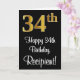 34. Geburtstag ~ Elegante Luxuriöse Imitate Gold L Karte