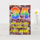 Die Vorderseite dieser farbenfrohen, herbstthematischen und naturlich inspirierten Geburtstagskarte zeigt eine große Zahl "34" mit einem inspirierten Regenbogengefälle, zusammen mit der Meldung "Happy 34 th Birthday" und einem anpassbaren Namen. Der Hintergrund der Vorderseite der Karte weist ein rustikales, gefallenes Herbstblatt-Muster auf. Im Inneren befindet sich eine bearbeitbare Geburtstags-Grußnachricht, oder man könnte sie löschen und leer verlassen werden, wenn eine Nachricht von Hand geschrieben werden soll. Eine solche individuelle Geburtstagskarte könnte eine lustige Art sein, Geburtstagwünsche an jemanden zu senden, der seinen vierunddreißig Geburtstag feiert. [~Z0000384]