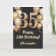 35. Geburtstag Black and Gold Balloons Confetti Karte