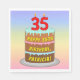 Dieses lustige und farbenfrohe Geburtstagskuppel-Design mit einer Cartoon-Darstellung eines dreistufigen Geburtstagskuchens mit nummerförmigen Kerzen auf der Oberseite, die das Alter "35" zeigt, zusammen mit der Meldung "HAPPY 35 TH BIRTHDAY" und einem personalisierten Empfängernamen. Der Hintergrund hat ein buntes pastellfarbenes Regenbogenspektrum, das inspirierte Farbverlaufsmuster aufweist. Papierservietten wie diese können zum Feiern des 35. Geburtstages von jemandem verwendet werden. [~Z0000623]
