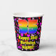 Dieses fröhliche und farbenprächtige Geburtstagskassensystem weist eine große Zahl "35" mit einem inspirierten Regenbogenspektrum-Muster auf, zusammen mit der Meldung "Happy 35 th Birthday" und einem anpassbaren Namen. Der Hintergrund weist ein Herz-Formen-Muster mit Farben wie Rosa, Rot und lila auf. Spaß, fröhliche Papiertassen wie diese können sich bei einem Geburtstagsfest/Party zum Feiern des 35. Geburtstages von jemandem erfreuen. [~Z0000548]