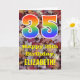 Die Vorderseite dieser bunten, naturlich inspirierten und rustikalen Geburtstagskarte zeigt eine große Zahl "35" mit einem Regenbogenspektrum inspiriert Muster. Es enthält auch die Meldung "Happy 35 th Birthday", und einen bearbeitbaren Namen. Die Vorderseite zeigt einen Hintergrund mit rustikalen gefallenen Herbstblättern. Im Inneren befindet sich eine personalisierte Geburtstagsgrüßbotschaft, oder man könnte sie löschen und leer verlassen werden, wenn eine Nachricht von Hand geschrieben werden soll. Eine solche Geburtstagskarte könnte eine lustige Art sein, Geburtstagswünsche an jemanden zu senden, der seinen fünfunddreißig Geburtstag feiert. [~Z0000384]