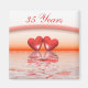 Magnet mit meinem Kunstwerk von zwei Korallenherzen, die unter einem Regenbogen auf dem Wasser schwimmen. Der anpassbare Text sagt "35 Jahre".