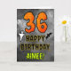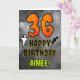Die Vorderseite dieses beängstigenden und spöttischen Halloween-Geburtstagskarten-Design hat eine große Zahl "36". Es enthält auch die Meldung "HAPPY BIRTHDAY", und einen bearbeitbaren Namen. Auf der Vorderseite sind auch Fledermaus und Gespenst dargestellt. Im Inneren befindet sich eine personalisierte Geburtstagsgrüßbotschaft, oder man könnte sie löschen und leer verlassen werden, wenn eine Nachricht von Hand geschrieben werden soll. Eine individuell gestaltbare Geburtstagskarte wie diese könnte eine lustige Art sein, eine Nachricht zum Feiern des sechsunddreißigsten Geburtstags von jemandem zu senden, der ebenfalls auf Halloween fällt (31. Oktober). [~Z0000547]