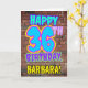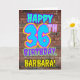 An der Vorderseite dieses lustigen Geburtstags-Thema Grußkarten-Design steht die Meldung "HAPPY 36TH BIRTHDAY" mit einem lebhaften, farbenfrohen, Graffiti und urbanen Street Art inspirierte Erscheinungsbild und einem benutzerdefinierten Empfänger-Namen. Der Hintergrund der Vorderseite weist ein inspiriertes Ziegelmauermuster auf. Die Innenseite hat eine personalisierte Geburtstagsgrüßbotschaft, oder könnte gelöscht und leer verlassen werden, wenn eine Nachricht von Hand geschrieben werden soll. Eine lustige, personalisierte Geburtstagskarte wie diese könnte eine lustige Art sein, jemandem, der seinen sechsunddreißigsten Geburtstag feiert, eine Geburtstagsgrüßbotschaft zu senden. [~Z0000531]