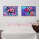 36"x26" Set von zwei Tapisserien Whimsical Fish Wandteppich Mit Holzrahmen