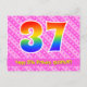 Die Vorderseite dieses fröhlichen, fröhlichen und optimistischen Geburtstags-Postkartendesigns zeigt eine große Zahl "37" mit einem inspirierten Regenbogenspektrum. Es enthält auch die Meldung "Happy 37 th Birthday", und einen benutzerdefinierbaren Empfängernamen. Die Vorderseite ist zusätzlich mit hellrosa und dunkelrosa Herzformen und Streifen-Mustern ausgestattet. Auf dem Rücken befindet sich eine individuell angepasste Geburtstagsgrüßmeldung, oder es könnte sein, dass sie gelöscht und leer verlassen wird, wenn eine Nachricht von Hand geschrieben werden soll. Eine personalisierte Geburtstagskarte wie diese könnte eine lustige Art sein, eine Nachricht zu senden, die jemandes siebenunddreißigsten Geburtstag feiert. Postkarten wie diese können auch benutzt werden, um die Gäste zu einer Geburtstagsparty oder Feier für jemanden einzuladen, der 37 Jahre alt ist. [~Z0000449]