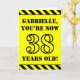 Die Vorderseite dieses kühnen und aufsehenerregenden Geburtstagskarten-Designs mit einem personalisierten Namen und der Meldung "YOU’RE NOW 38 YEARS OLD!" im schwarzen Schablonentext auf gelbem Hintergrund. Die Vorderseite ist mit einem auffällig gelb-schwarz gestreiften Muster an den oberen und unteren Rändern versehen. Im Inneren befindet sich eine individuell angepasste Geburtstagsgrüßbotschaft, oder man könnte sie löschen und leer verlassen werden, wenn eine Nachricht von Hand geschrieben werden soll. Eine personalisierte Geburtstagskarte wie diese ist vielleicht eine lustige Art, Geburtstagwünsche jemandem zu senden, der seinen achtunddreißigsten Geburtstag feiert. [~Z0000413]