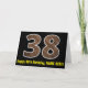 Die Vorderseite dieses lustigen und rustikalen Geburtstags Thema Grußkarte Design hat eine große Zahl "38" mit einem Imitation Holz Getreide inspiriert Aussehen Muster, zusammen mit der Meldung "Happy 38 th Birthday,", und einen individuelle Name. Im Inneren befindet sich eine personalisierte Geburtstagsgrüßbotschaft, oder man könnte sie löschen und leer verlassen werden, wenn eine Nachricht von Hand geschrieben werden soll. Eine individuell gestaltbare Geburtstagskarte wie diese könnte eine lustige Art sein, Geburtstagswünsche an jemanden zu senden, der seinen achtunddreißigsten Geburtstag feiert. [~Z0000431]