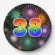 Dieses farbenfrohe, lustige und fröhliche Papier-Plattendesign zeichnet sich durch eine große Zahl "38" mit einem inspirierten Regenbogenspektrum aus. Es zeichnet sich auch durch ein spannendes und lebendiges, aufstrebendes Feuerwerk inspiriert Muster aus. Der Hintergrund ist schwarz. Teller wie diese können bei einer Feier zu Ehren des 38. Geburtstages von jemandem, eines 38. Jahrestages oder einer anderen achtunddreißigsten Veranstaltung genutzt werden. [~Z0000490]