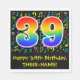 Dieses lustige, farbenfrohe und lebendige Geburtstagsthema Papier Serviette Design zeichnet sich durch eine große Zahl "39" mit einem Regenbogenspektrum inspirierten Muster aus. Es enthält auch die Meldung "Happy 39 th Birthday", und einen bearbeitbaren Namen. Ein Teil des Hintergrundes weist verschiedene Musiknoten und Symbole mit verschiedenen Farben und Größen auf. Spaß, bearbeitbare Geburtstagsthemen wie diese können bei Musikern, Sängern, Komponisten oder anderen Jungs zum neununddreißigsten Geburtstag verwendet werden. [~Z0000421]