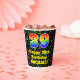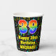 Dieses fröhliche und aufregende musikalische Geburtstagspapier-Cup-Design zeichnet sich durch eine große Zahl "39" mit einem inspirierten Regenbogenspektrum aus. Es enthält auch die Meldung "Happy 39 th Birthday", und einen benutzerdefinierbaren Namen. Der Hintergrund weist ein buntes Muster mit Musiknoten und Symbolen verschiedener Farben und Größen auf. Lebhafte, farbenfrohe Papiertassen wie diese können sich bei einer Geburtstagsparty/Feier zum Geburtstag von jemandem zum neununddreißigsten Geburtstag amüsieren. [~Z0000541]