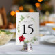 Die Tischnummern der Themenparties im Grünen bieten handbemalte Botanicals in Aquarellen und eine hübsche rote Poinsettia. Das Design ist gerahmt in einem doppelgoldfarbigen Aquarelldiamanten und mit passenden Goldklecksen versehen. #Christmas #Holidays #HolidayParty