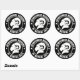 3" Aufkleber, Set 6, Weiß auf Schwarz Runder Aufkleber