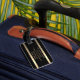 3-D Gold Monogramm und Name, Goldränder auf schwar Gepäckanhänger