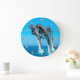 Diese große blaue Wanduhr verfügt über 3 Delphine, die springen. Auch in kleineren Größen und quadratischen Formen erhältlich.