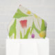 Farbige Tulpen-Illustrationsmuster über hellbeige, anpassbare Hintergrundfarbe. Lila, gelbe und rote Tulpen mit grünen Blättern