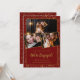 Der goldene Konfetti schmückt den bordeauxroten Hintergrund sowohl auf der Vorderseite als auch auf der Rückseite. Drei Fotos von Paaren sind Merkmale auf der Vorderseite. Alle unten stehenden Texte beinhalten die große Wir sind Verlobt können bearbeitet werden, um Ihre einzigartige Verlobung Ankündigung anpassen.