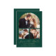 Diese schlichte, minimalistische Save the Date-Karte verfügt über einen 3-Foto-Collage-Bogen über den Worten "Save the Date" in elegantem, goldfarbenem Handschriftzeichen, gefolgt von den Namen der Ehepaare, dem Hochzeitstag und der Stadt in sans serif Schriftart auf einem smaragdgrünen Hintergrund. Fügen Sie eine detailliertere Nachricht mit zusätzlichen Informationen auf der Rückseite, zusammen mit einem QR-Code, um Ihren Gästen zu helfen, besuchen Sie Ihre Hochzeitswebsite.