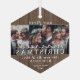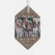 Feiern Sie einen fröhlichen 1. Urlaub als Neuvermählte mit einer maßgeschneiderten 3-Foto-Collage "Unser erstes Verheiratetes Weihnachtsfest" Imitate aus sechseckigen Glasschmuck. Alle Texte und Bilder auf dieser Vorlage sind einfach zu personalisieren. (IMAGE PLACEMENT TIP: Eine einfache Möglichkeit, ein Foto genau so zu zentrieren, wie Sie es gewollt haben, ist es, es einzuschneiden, bevor Sie es auf die Zazzle-Website hochladen.) Das moderne Bauerndesign besticht durch rustikale braune Imitate aus Holz, handgeschriebene Schriftzeichen, elegante Typografien und das Jahr sowie drei Bilder Ihrer Wahl. Dieser einzigartige Ehering-Sake fügt den Xmas-Zuhause-Dekorationen des Ehepaares eine stilvolle Touch hinzu. Frohe Weihnachten & Glückwünsche an den neuen Herrn. & Mrs.