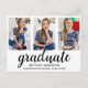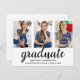 Moderne 3-Foto-Graduierungsparty Einladung Postcard - Weiß, Schwarz - Schwarzes Script - Schwarze Rückseite