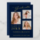 Wunderschön elegante 3 Foto Abschluss Anzeigenkarten. Moderne Schrift mit Kalligrafieschrift in der Wahl von Gold, Silber oder Rose. Das Design wird durch einen stilvollen marineblauen Hintergrund auf der Vorderseite mit einem hellblauen Hintergrund auf der Rückseite ergänzt. Die Rückseite der Karte bietet einen personalisierten Anzeigentext für diesen Diplom. Um mehr zu sehen, besuchen Sie meinen Shop hier unter "www.Zazzle.com/LakeViewCardCo". Danke