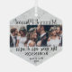 Feiern Sie einen fröhlichen 1. Urlaub als Neuvermählte mit einer maßgeschneiderten 3-Foto-Collage "Merry & Verheiratet" hexagonförmige Glasschmuck. Bilder und Texte auf dieser Vorlage sind einfach zu personalisieren. (IMAGE PLACEMENT TIP: Eine einfache Möglichkeit, ein Foto genau so zu zentrieren, wie Sie es gewollt haben, ist es, es einzuschneiden, bevor Sie es auf die Zazzle-Website hochladen.) Das Schwarz-Weiß-Design besticht durch einen Marmorhintergrund, moderne handgeschriebene Schriftzeichen-Kalligraphie, elegante Typografien & Jahre und drei Bilder Ihrer Wahl. Dieser einzigartige Ehering-Sake fügt den Xmas-Zuhause-Dekorationen des Ehepaares eine stilvolle Touch hinzu. Frohe Weihnachten & Glückwünsche an den neuen Herrn. & Mrs.