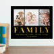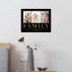 Fügen Sie eine elegante personalisierte Touch zu Zuhause-Dekorationen mit einer einzigartigen individuellen Foto-Collage und Zitat Goldfolie-Druck hinzu. Das Bild und alle Formulierungen auf dieser Vorlage sind einfach zu personalisieren, einschließlich des Textes "Jede Familie hat eine Geschichte ・ Willkommen bei uns" (IMAGE PLACEMENT TIP: Eine einfache Möglichkeit, ein Foto genau so zu zentrieren, wie Sie gewollt haben, ist es, es einzuschneiden, bevor Sie es auf die Zazzle-Website hochladen.) Das moderne Overlay-Design besticht durch echte metallische Gold- oder Silberfolie, drei ausgewählte Bilder und eine stilvolle Vintage Typografie. Dieses individuelle Wandkunstwillkommen-Zeichen mit sentimentalem Sprichwort macht eine nachdenkliche Geschenkidee für Verwandte. Was ist besser, um Ihre Zuhause zu dekorieren, als mit Ihren Lieblingsfamilien-Erinnerungen.