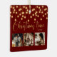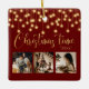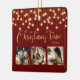"Weihnachtszeit" in schönen Imitaten goldene Schrift auf einem roten Hintergrund. Ersetzen Sie Fotos durch 3 Ihrer persönlichen Lieblings-Fotos. Goldene Imitate, die Lichter bzw. Signalleuchten herunterhängen. Ändern Sie das Jahr und was für ein schönes Ornament. Elegant. So einfach, aber elegant.