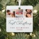 Feiern Sie mit diesem modernen 3-Foto-Personalisierten Ornament Ihr erstes Weihnachtsfest. Zeigen Sie drei Ihrer Lieblings-Baby-Fotos zusammen mit dem eigenen Text, einschließlich des Namens Ihres Kindes und des Jahres, um einen wertvollen Urlaubsgenuss zu schaffen. Dieses elegante Ornament macht einen sinnvollen Zusatz zu Ihrem Baum und ein herzliches Geschenk für Großeltern und Lieben. Es ist mit zeitloser, moderner Ästhetik gestaltet und ist eine wunderschöne Art, sich an diesen besonderen Meilenstein in jeder Urlaubssaison zu erinnern.