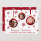 Diese clevere Holiday-Karte bietet ein lustiges Design, mit dem Sie Ihre Fotos in Rote Baubles oder Weihnachtsschmuck hochladen können. Es gibt Platz für 3 Bilder, jede innen ist ein eigenes Ornament. Der Gruß lautet Happy Holidays. Der Hintergrund ist weiß mit roten Schneeflocken. Die Rückseite der Karte drehe die Farben und ist rot mit weißen Schneeflocken. Einzigartig, lustig und skurril, ist diese Karte eine großartige Möglichkeit, die Grüße der Saison zu senden.