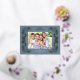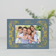 Die hellblaue Weihnachtskarte mit goldgelber Wintergrün umrahmt das Foto. Die Rückseite bietet 2 zusätzliche quadratische Fotos und benutzerdefinierten Text für eine persönliche Nachricht.